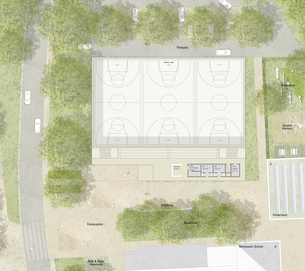 Dreifeldsporthalle Dr. Pfleger Campus, Hallstadt / Erdgeschoss