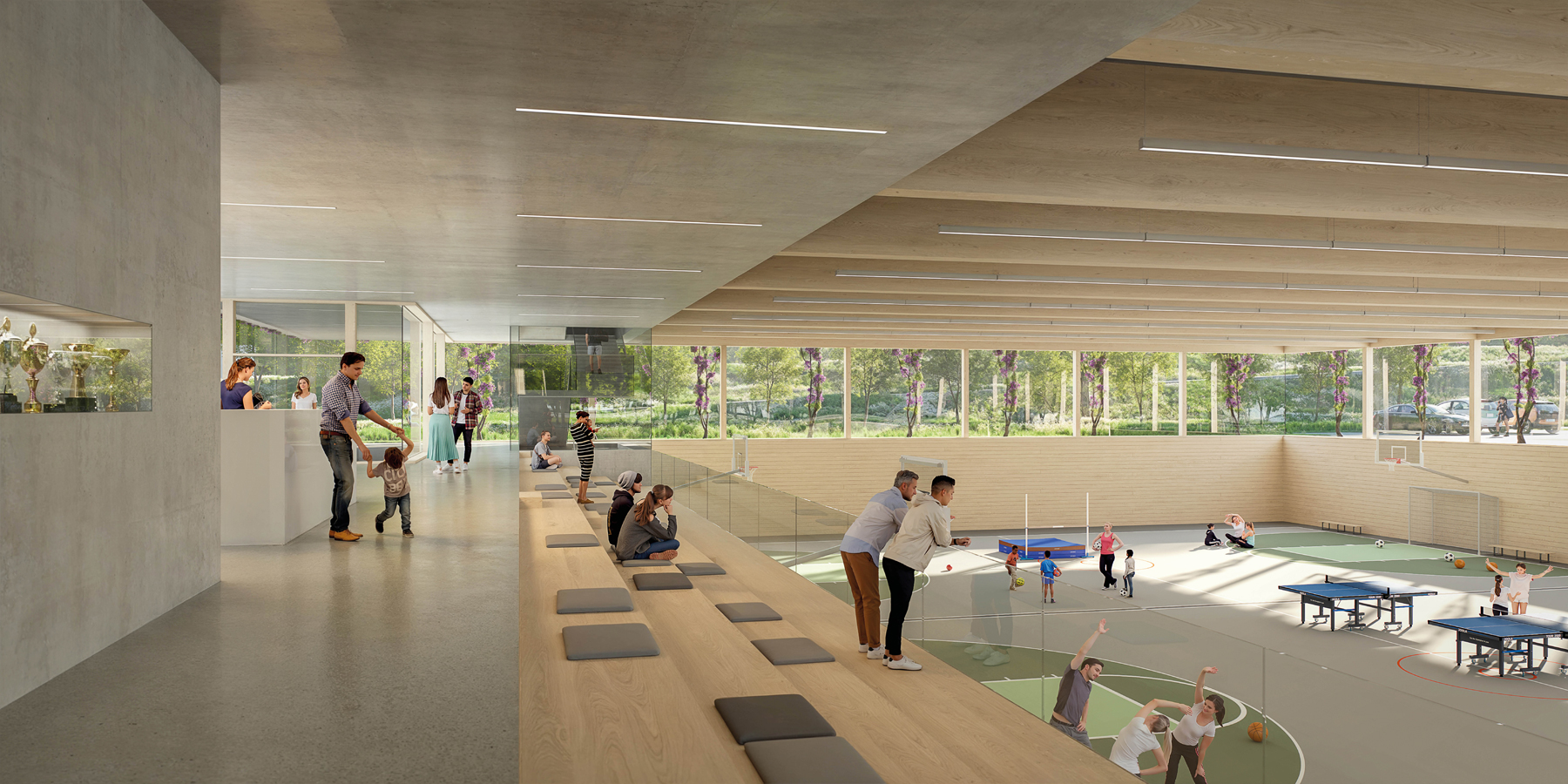 Dreifeldsporthalle Dr. Pfleger Campus, Hallstadt / Blick vom Erdgeschoss