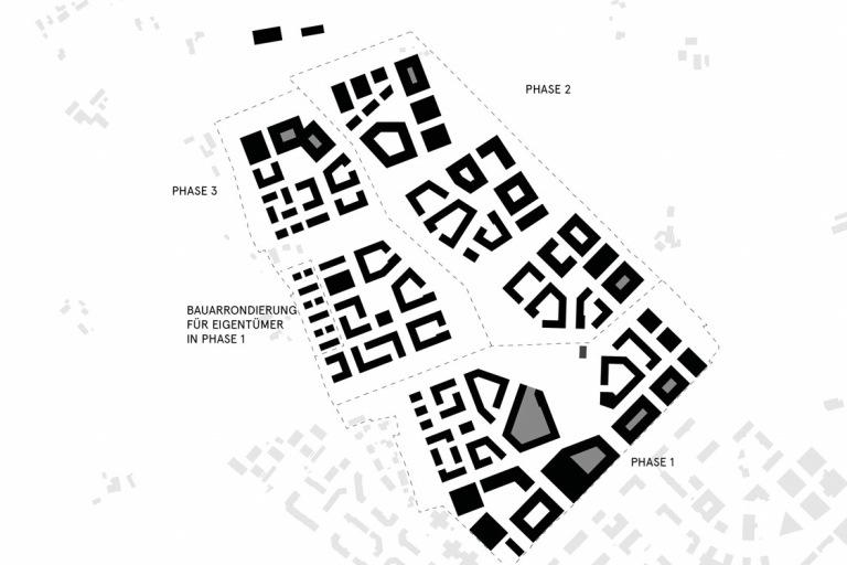 Die typologische Diversität erzeugt hinsichtlich der Geschossigkeit ein Spektrum von II – VII, wobei sich die sechs- und siebengeschossige Bebauung auf einzelne Punkte an Plätzen sowie entlang des Parks beschränkt. Der zentrale Platz versteht sich als Knotenpunkt der Verdichtung unweit der Austermannstraße. Von dort aus kommend öffnet sich der Platz zum Park und man erlebt die Urbanität des Platzes kombiniert mit der Weite des landschaftlich geprägten Parks. Die durch Handel und soziale Infrastruktur aktivierten Erdgeschosszonen unterstützen den urbanen Charakter des Ortes. In den nördlichen Clustern reduziert sich die Höhenentwicklung auf max. 4 Regelgeschosse, wobei sie sich am westlichen Rand entlang des Wasserwegs auf 2-3 reduziert, wo für Eigentümer Bauarrondierungsoptionen bestehen. Das neue Quartier zeichnet sich insgesamt durch eine wohldosierte Urbanität aus, welche die Komponenten Landschaftsbezug, Gemeinschaft, typologische Vielfalt, Adressbildung und Vernetzung miteinander verknüpft und hieraus eine unverwechselbare Identität entwickelt.