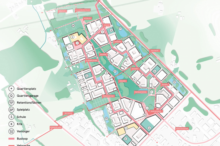 Der Entwurf reagiert auf die veränderten Lebensbedingungen durch den Klimawandel und hat gleichzeitig zum Ziel, klimaneutral zu sein. Das Konzept greift die Herausforderungen der Energiewende im urbanen Raum auf und zielt auf eine sektorenübergreifende Vernetzung der Gebäude- und Mobilitätsinfrastruktur. Ziel ist das „Smarte Quartier“, das eine effiziente Energieversorgung, einen ressourcenschonenden Umgang mit Baumaterialien und die Integration von Mobilitätsdienstleistungen in